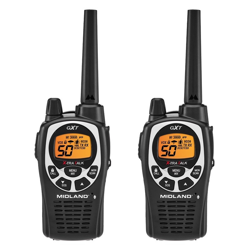 Midland GXT1000VP4 GMRS Two-Way Radio (50-Channel, Long Range, 142 Privacy Codes, SOS, NOAA, Rechargeable Nickle Battery, Black/Silver, 2-Pack)