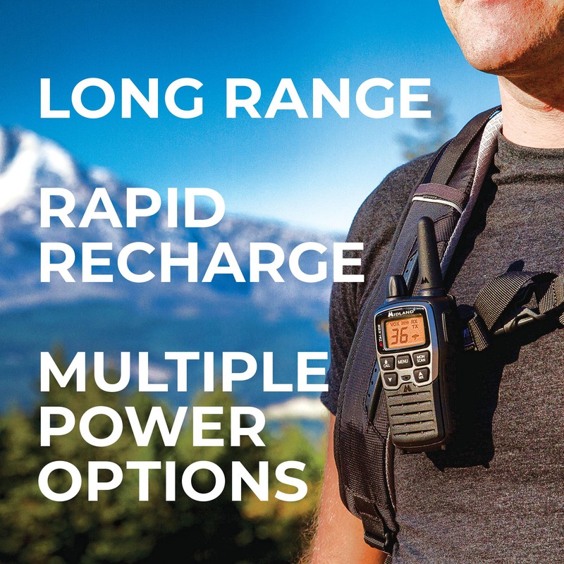 Midland® T71VP3 X-TALKER Long Range Walkie Talkie - FRS Two-Way Radio for Camping Overlanding Rock Crawling - NOAA Weather Scan - 36 Channels and 121 Privacy Codes Black/Silver 2 Pack