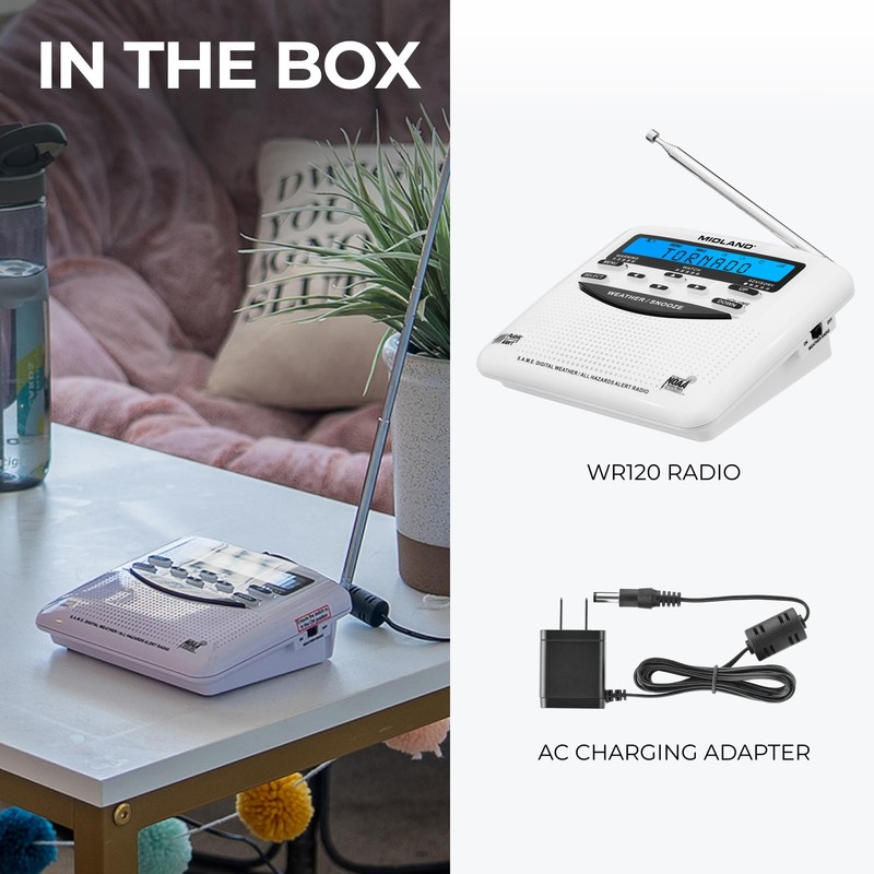Midland - WR400 Weather Radio Deluxe - NOAA Emergency Alert Scanner – Home Use with Battery Backup - Local County Programming Over 80 Emergency Voice Flashing Alerts – Alarm Clock AM/FM Radio