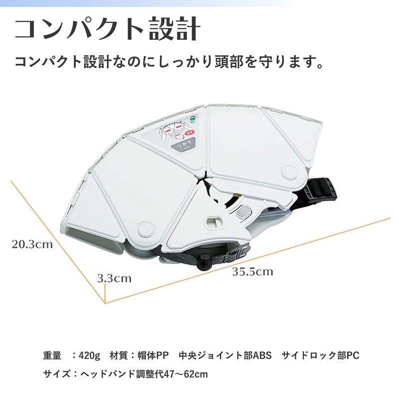 Midori Anzen TSC-10N Flatmet2 Folding Safety Helmet for Disaster Preparedness, Meets National Certification Standards, White
