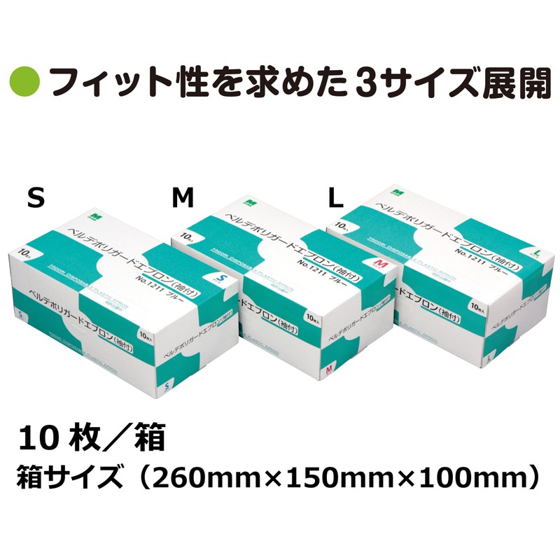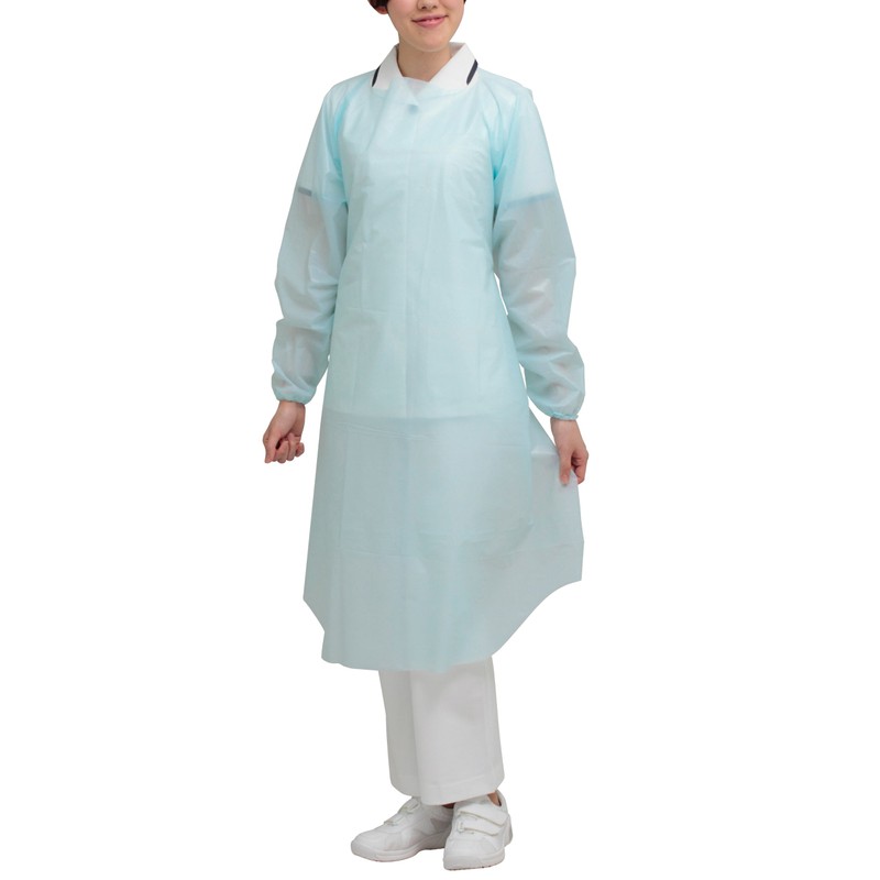 Midori Anzen Verde Poly Guard Apron, Long Sleeve, Elastic Cuffs, Blue, L, 10 Pieces