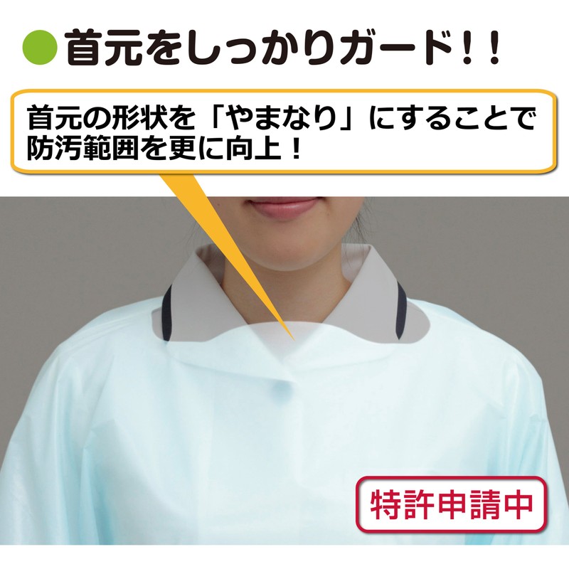 Ideal for preventing infections from contact infections and splashing infections. Can also be used for nursing, nursing, and assistance such as diapers and waste processing - The neck (opening) improves the dirt-prevention area. >>> Center of the opening and the top of the shoulder at the same height. By lowering the position of the opening backward, the area of the chest area has been improved. <