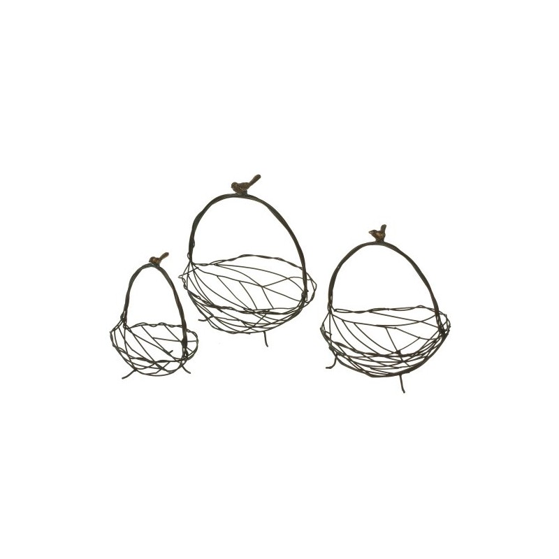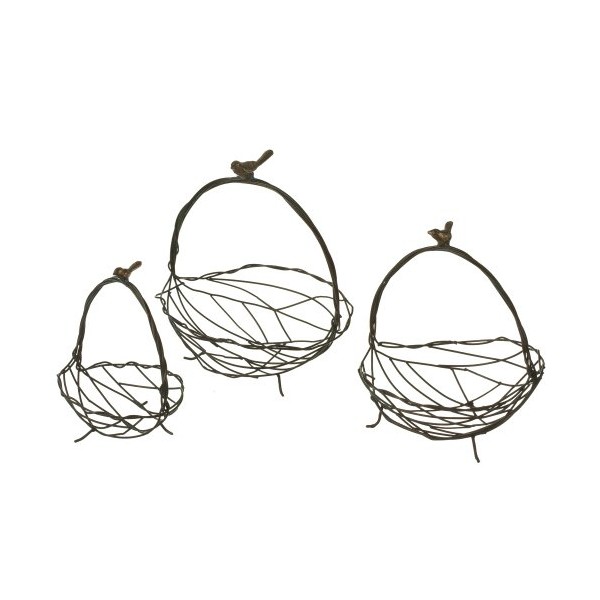 Midwest-CBK Bird and Twig Nested Basket, Cast Iron, Set of 3