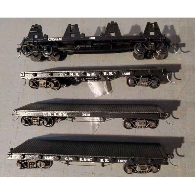 O Scale CNS&M Flat Car waterslide decal set, dose several flatcars with one set. You must supply your own Flat cars to decal. This is only for decal set, models only shown for reference.