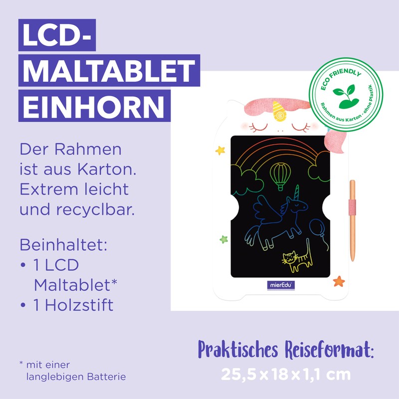 mierEdu LCD Writing Board Children's Unicorn 8.5 Inch I Erasable with Button & Reusable Painting Board Magic Board I Eco Friendly Includes Wooden Pen