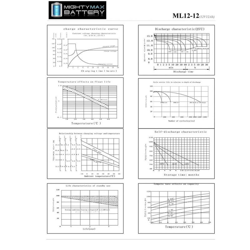 - ML12-12F2 SLA is a 12V 12AH Sealed Lead Acid (SLA) rechargeable maintenance free battery, Pack of 4 - UL Certified