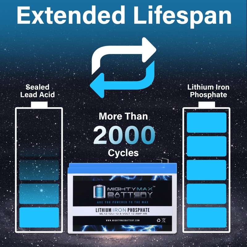 - ML12-12LI is a 12V 12Ah Lithium iron phosphate sealed, rechargeable and maintenance free battery. Direct drop in lead acid replacement - Pack of 3