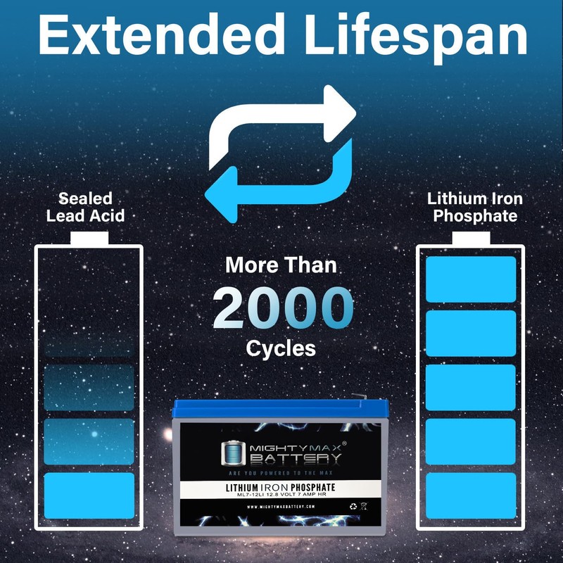 - ML7-12LI is a 12V 7Ah Lithium iron phosphate sealed, rechargeable and maintenance free battery. Direct drop in lead acid replacement - Pack of 4