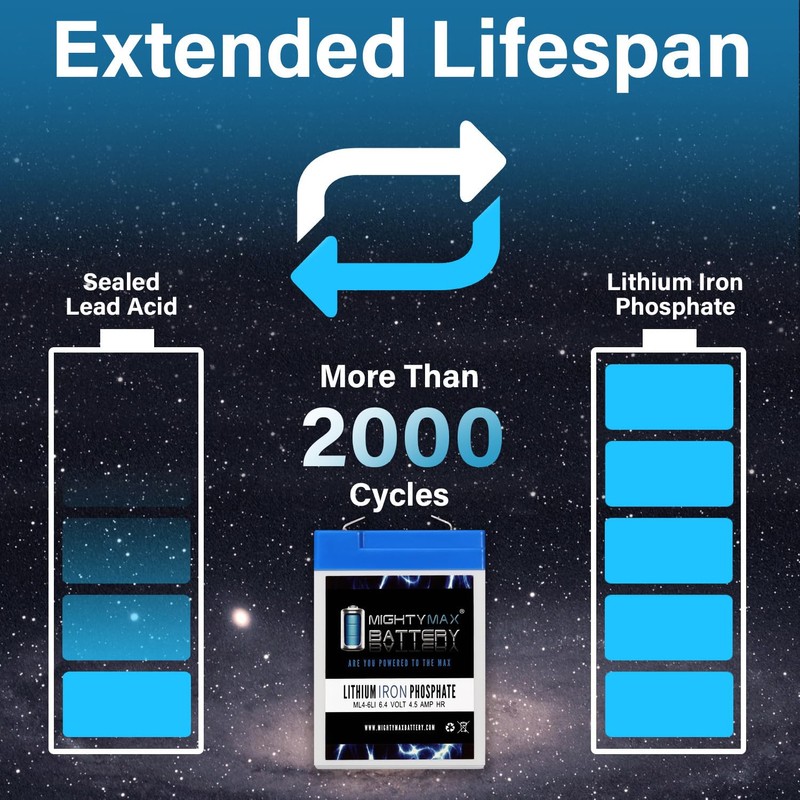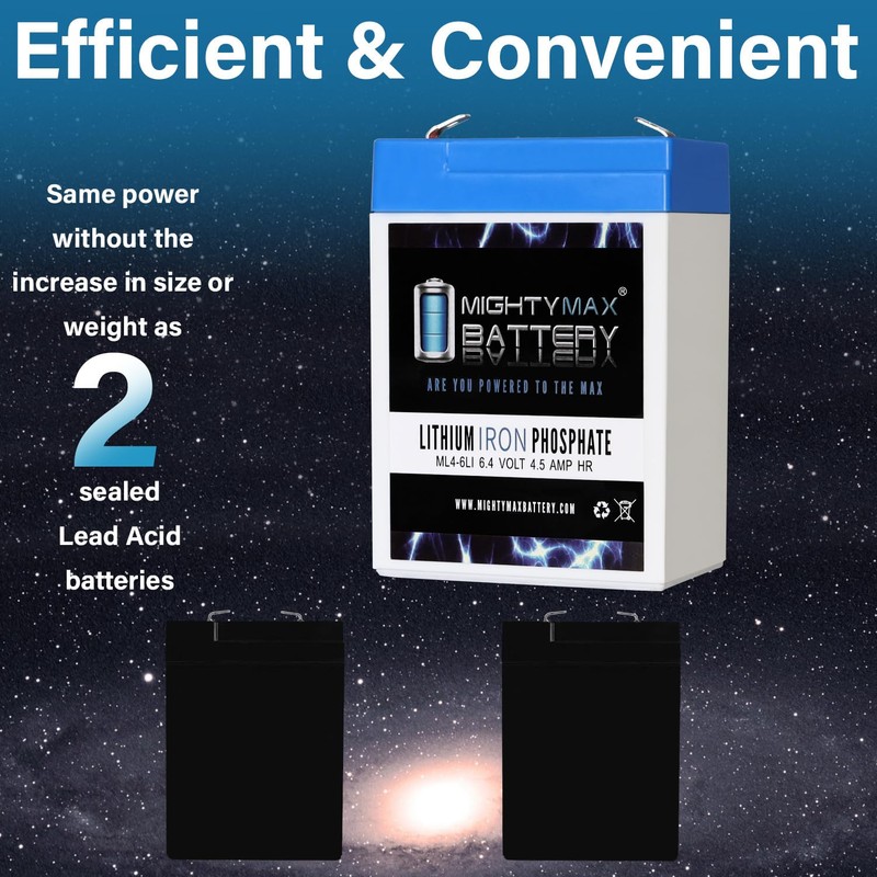 - ML4-6LI is a 6.4V 4.5Ah Lithium iron phosphate sealed, rechargeable and maintenance free battery. Direct drop in lead acid replacement.
