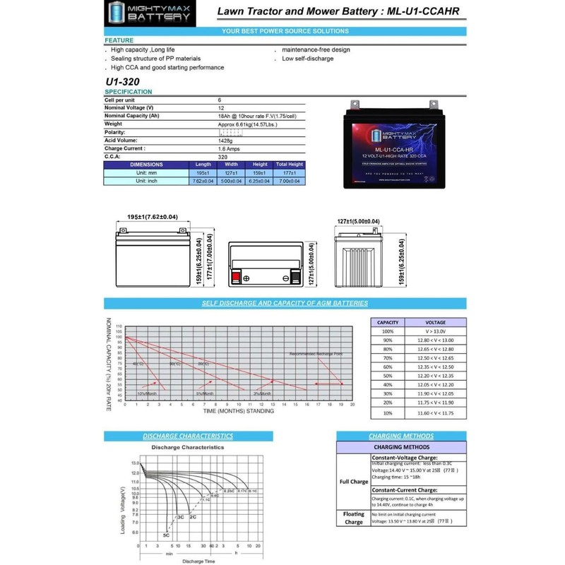 • ML-U1 is a 12V 320 Cold Cranking Amps (CCA) Sealed Lead Acid (SLA) Battery.