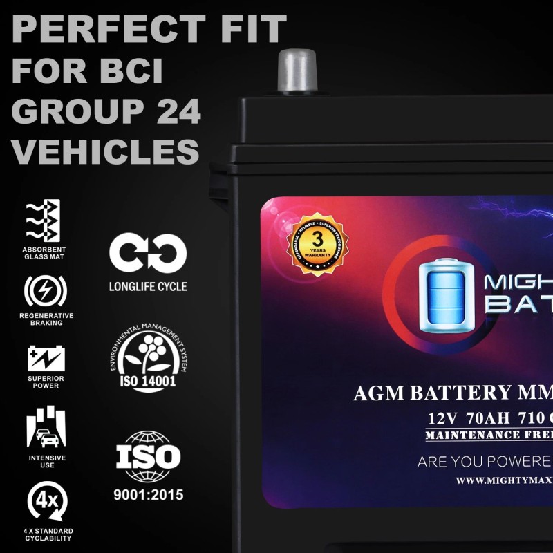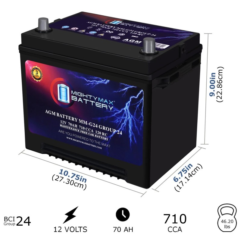 MM-G24 Group 24 12V 70Ah AGM Battery Compatible with Jeep CJ6 60