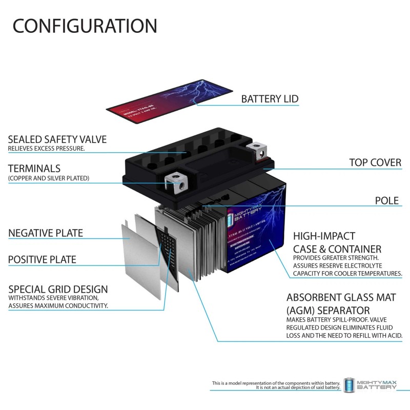 Mighty Max YTX4L-BS AGM Battery Compatible with CB650R, RA, CB900F (919)