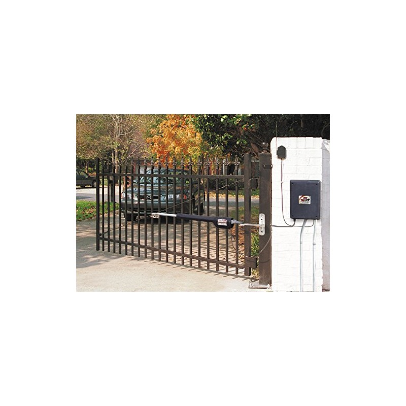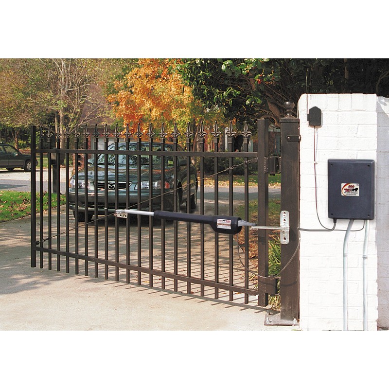• This convenient bracket attaches the gate opener at the gate post at an angle that allows the gate to swing away from the property instead of into it. This metal bracket is ideal for sloping driveways or where space prevents a gate from opening inward.