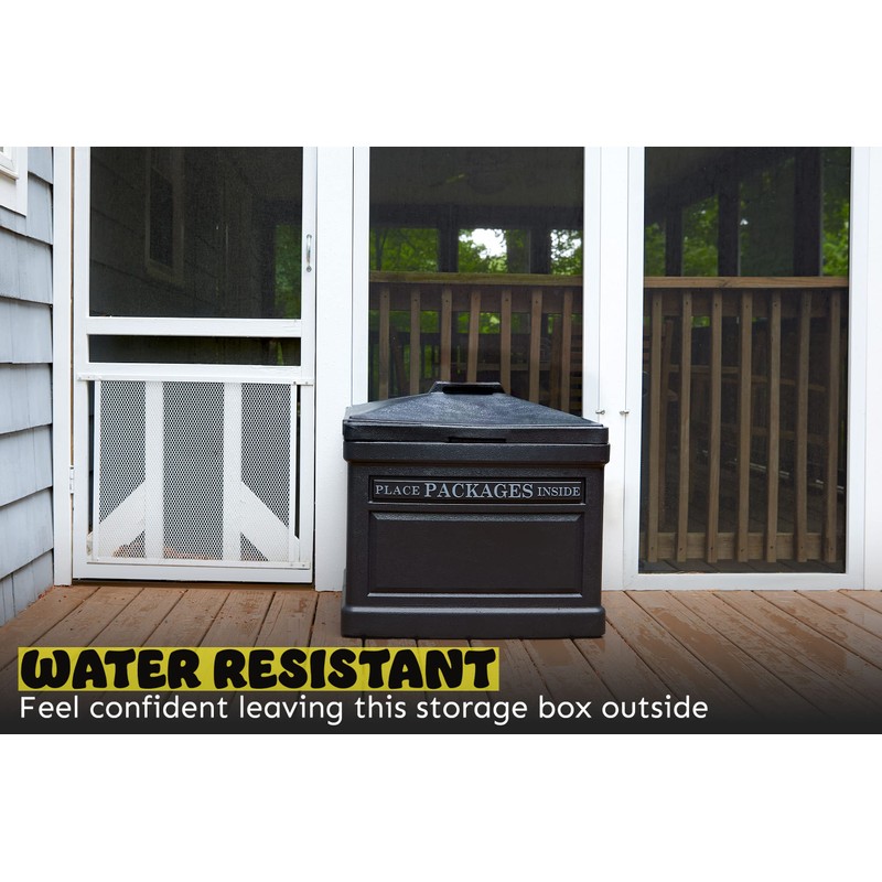- VERSITILE AND FUNCTIONAL DESIGN- Turn the box around and use as a patio storage box or keep it front facing to show “Place Packages Inside” to get deliveries. Can be used inside or outside to store extra items