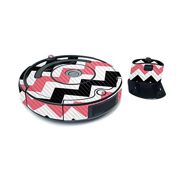 MightySkins Carbon Fiber Skin for iRobot Roomba 675 Max Coverage - Black Pink Chevron | Protective, Durable Textured Carbon Fiber Finish | Easy to Apply, Remove, and Change Styles | Made in The USA