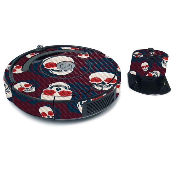 MightySkins Carbon Fiber Skin for iRobot Roomba 675 Max Coverage - Skulls N Roses | Protective, Durable Textured Carbon Fiber Finish | Easy to Apply, Remove, and Change Styles | Made in The USA