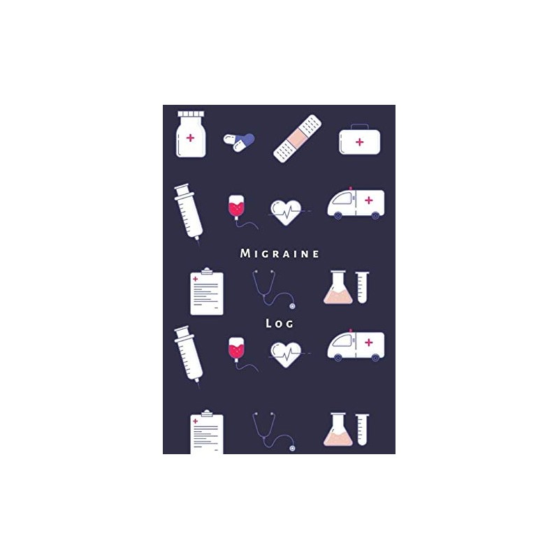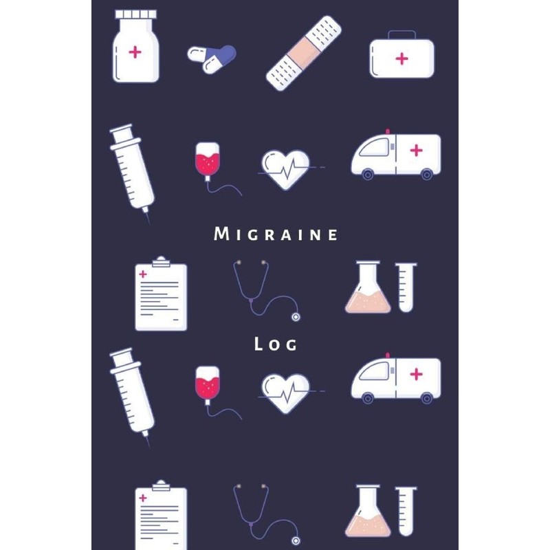 Migraine Log: Journal, Notebook tracker. Undated daily chronic migraine headache log sheet for trigger food, symptoms, weather, pain relief medication for migraine sufferer.
