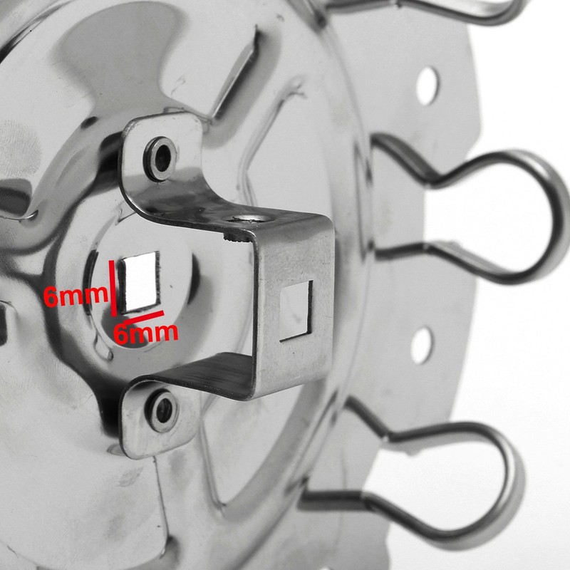 - Stainless steel material, Spit Rod Hole Size: 6mm x 6mm/about 1/4" in diameter (ROD IS NOT INCLUDED), PLEASE DOUBLE CHECK IF THE PRODUCT SIZE FITS YOUR ROTISSERIE BEFORE PURCHASING