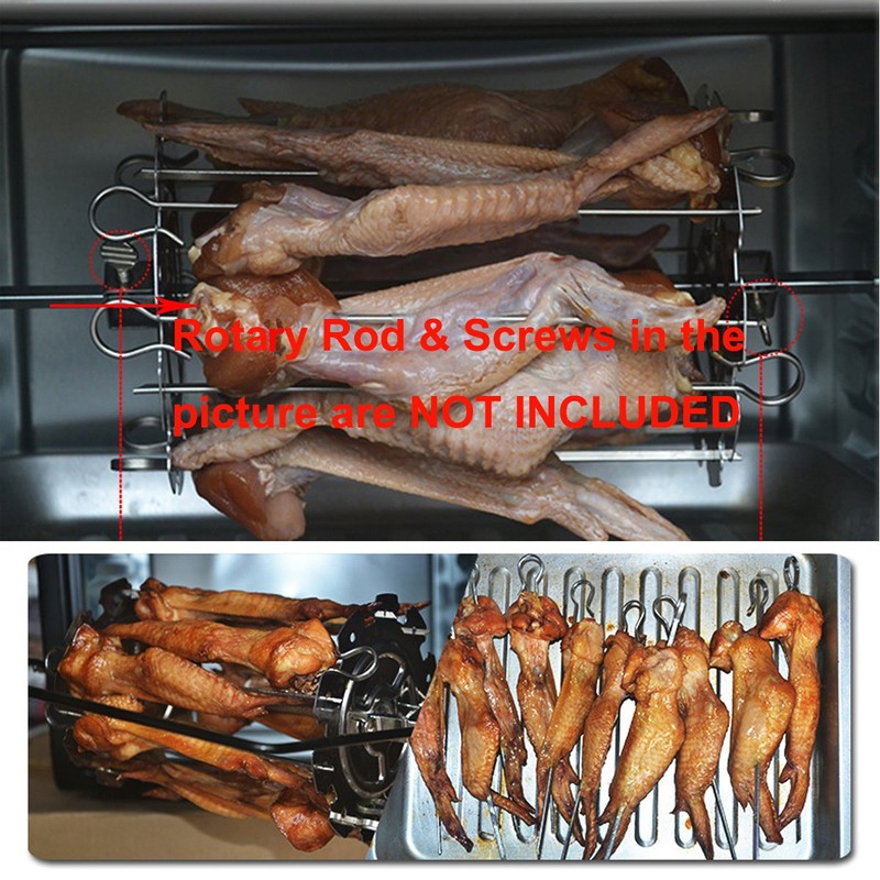 MiguCo Stainless Steel BBQ Grill Cage Vegetable Meat Skewer Kebab Maker for Rotisserie Oven Roaster