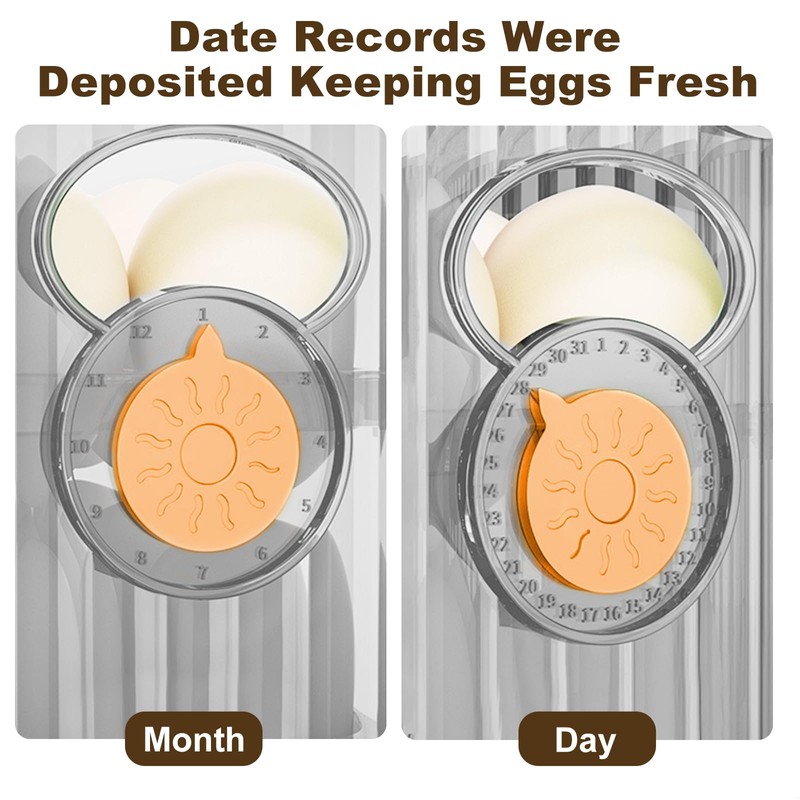 - Record Date MIHEALPET fridge egg organizer has adjustable date dials on both sides, which can accurately record the date of purchase or storage of eggs, helping us to eat fresh eggs every time, so that we can have a healthy and orderly eating habits.