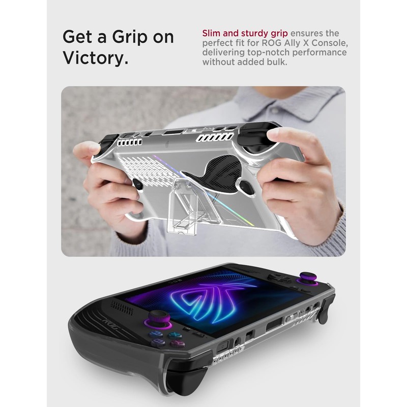 - [Portable Stand] This ASUS ROG Ally X 2024 case comes with a built-in stand on the back, which is made of hard PC material, which can place your ROG Ally X stably, release your hands and make it easy, easy to enjoy your games and time.