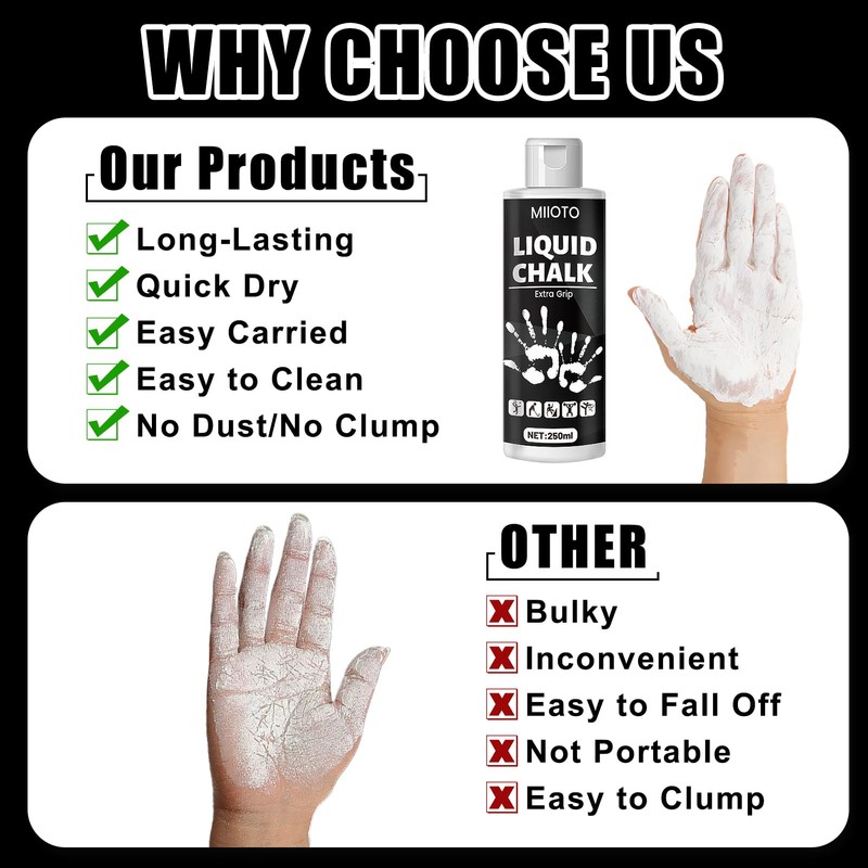 Miioto Liquid Chalk - 250 Ml Flüssigkreide, Geeignet Als Boulder Chalk, Climbing Chalk, Gym Chalk, Pole Dance, Gymnastik, Gewichtheben, Flüssigkreide Schnell Trocknend, Abwaschbar