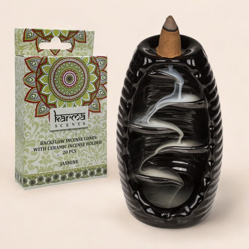 MIJOMA 60 Backflow Incense Cones Waterfall for Relaxation and Meditation - 3 Exquisite Fragrances in a Set - Perfect for Inner Peace and Peace (Karma Mix 1, 60 Incense Cones)