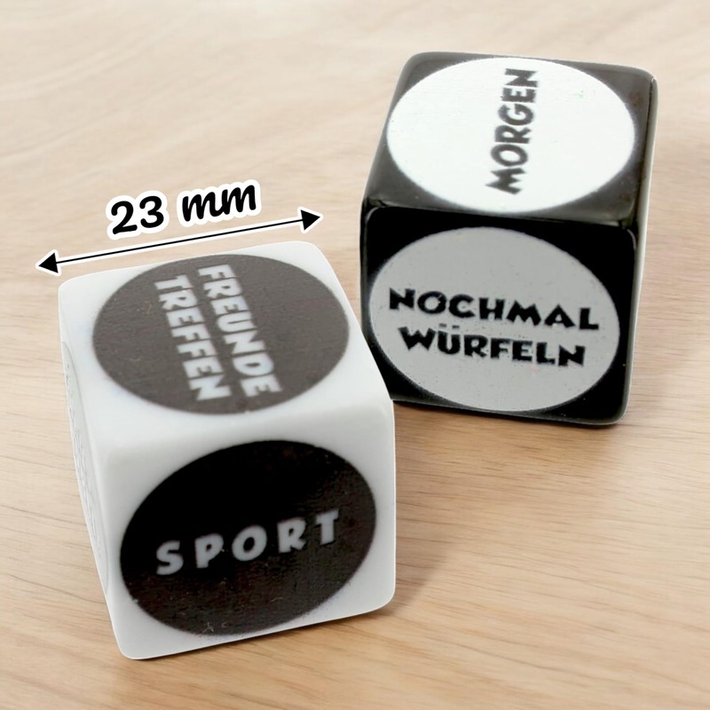 - Robust, handlich und immer dabei Die Würfel sind aus stabilem Kunststoff und passen in jede Tasche. Perfekt für spontane Entscheidungen – egal wo du gerade bist
