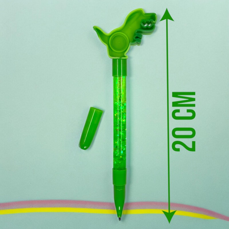 MIJOMA Set of 4 Ballpoint Pens with Fidget Pop It Topper - Enchanting Writing Pleasure, Dinosaur & Unicorn, Glitter Liquid, Black Ink, 20 cm (Dinosaur Unicorn Mix)