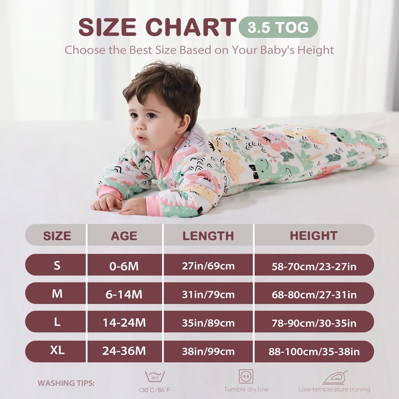 - 【3.5 Tog for Winter Warmth】 Our baby sleeping bag is ideal for cold weather, as it has a 3.5 tog rating that keeps your baby warm and comfortable in room temperatures of 8-16°C. It comes in three sizes to fit your baby’s growth stages: 0-6 months, 6-14 months,14-24months and 24-36months.