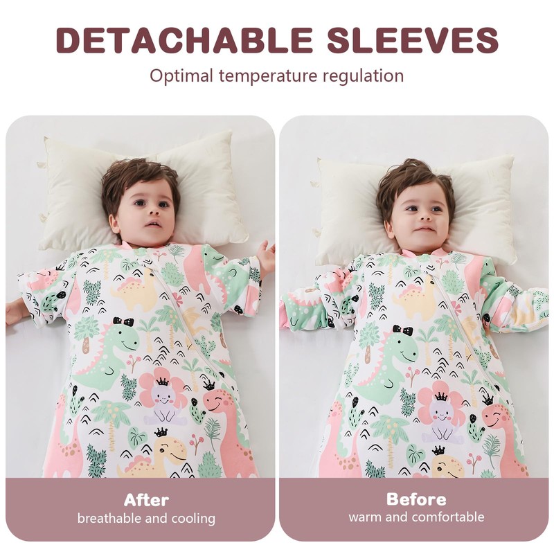 - 【Detachable Sleeves for Year-Round Use】 Our baby sleeping bag adapts to changing seasons with its detachable sleeves. You can easily zip them on or off depending on the temperature. When it’s hot, remove the sleeves to keep your baby cool and refreshed. When it’s cold, attach the sleeves to provide cozy warmth and protection.