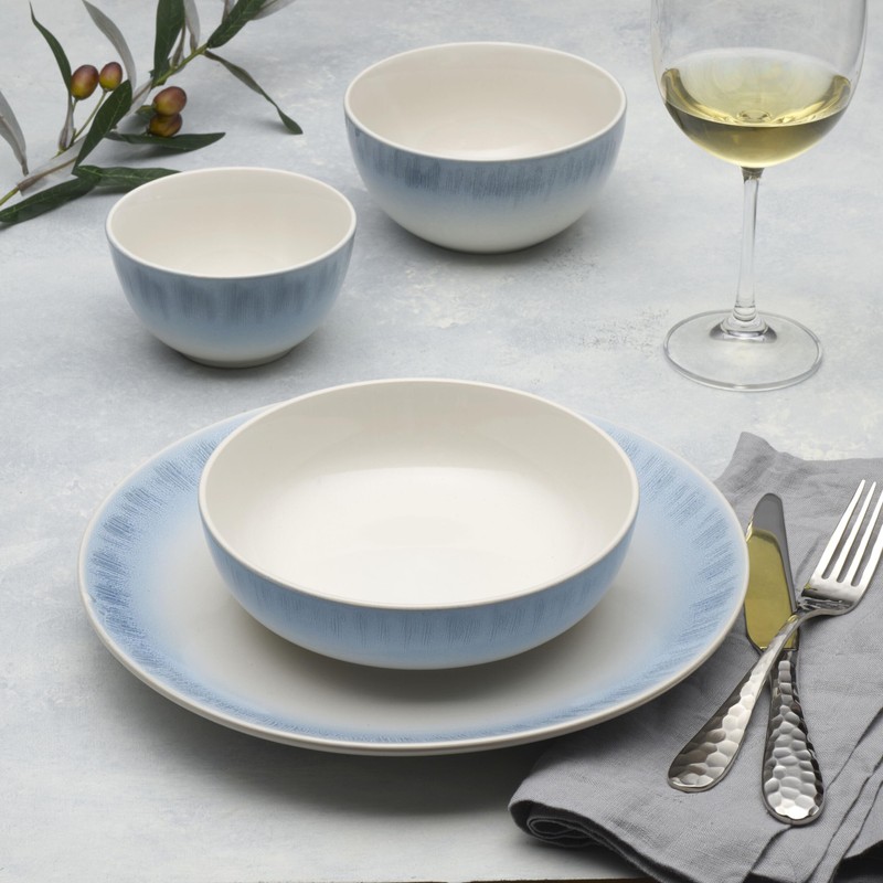 - CONTEMPORARY ALLURE: Logan dinnerware adds a touch of modern style to your tabletop as the fresh blue color fades into an ombre effect off the edge of each piece