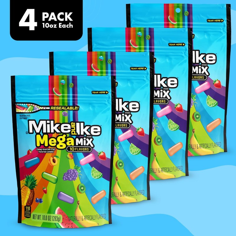 - Delicious Fruity Flavor: Indulge your taste buds in the delightful world of Mike and Ike Mega Mix Candy, a fruity candy classic that has been satisfying fans for generations. Bursting with an irresistible medley of all 10 Mega Mix flavors, it’s perfect for snacking on the go or enjoying at home.