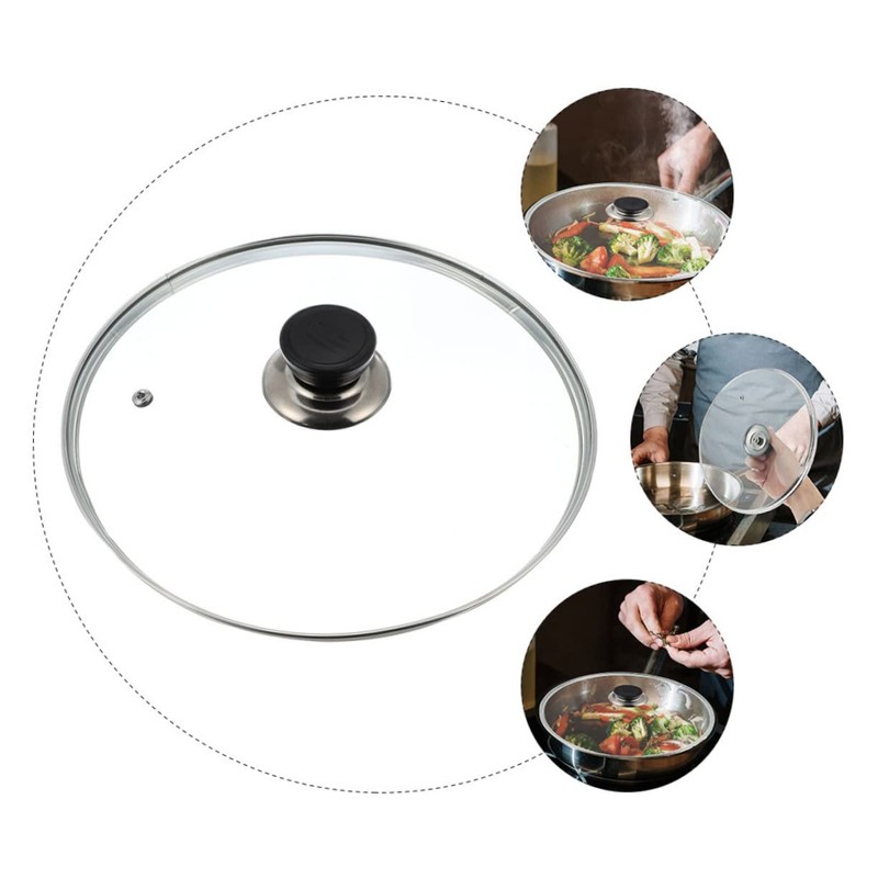 Mikinona 1pc Tempered Glass Pot Lid Transparent Cooking Cover with Stainless Oil Splashing Kitchen Gadget for Frying Pans and Soup Pots