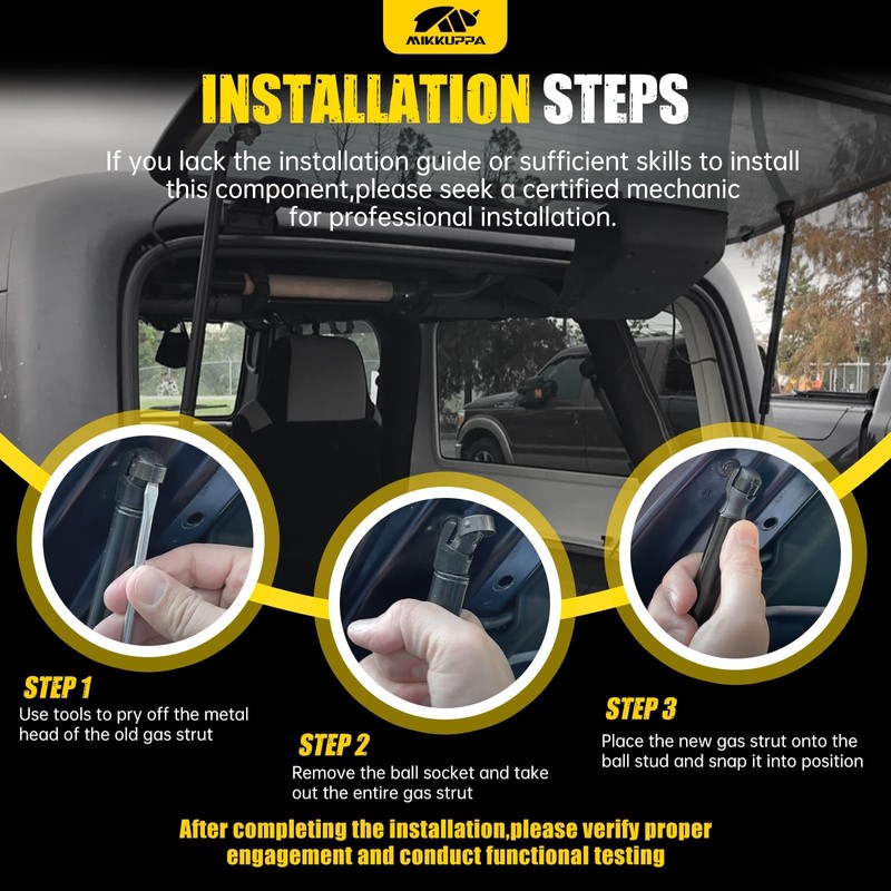 • [Quick Installation]: Our gas spring shocks can be installed in 5 minutes with just a flathead screwdriver, no special tools required. Note: If you lack the installation guide or sufficient skills to install this component, please seek a certified mechanic for professional installation
