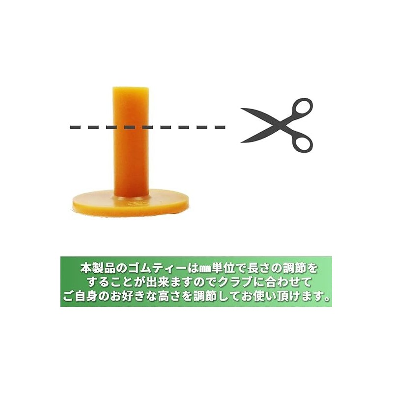 - 【 自由自在に長さを調節できます! 】本製品のゴムティーは㎜単位で長さの調節をすることが出来ますので、クラブに合わせてご自身のお好きな高さを調節してお使い頂けます。最適なサイズのゴルフティーを使ってするゴルフは飛距離アップや打ちやすさが全く違います。本製品のゴムティーはインパクト時の抵抗を最小限に抑えることが出来ますので、飛距離を伸ばしたい方にオススメです。また、本製品を打ちっぱなしの練習場やご自宅での練習目的でサイズ調整をする際は、マットの厚みを考慮して調節する事をオススメします。