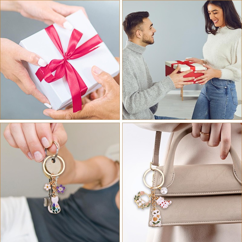 - Cute Design: The keychains are themed with delicate white cats, decorated with floral patterns and wreaths, cute and creative, full of feminine charm, very suitable for keys, bags, backpacks, etc.