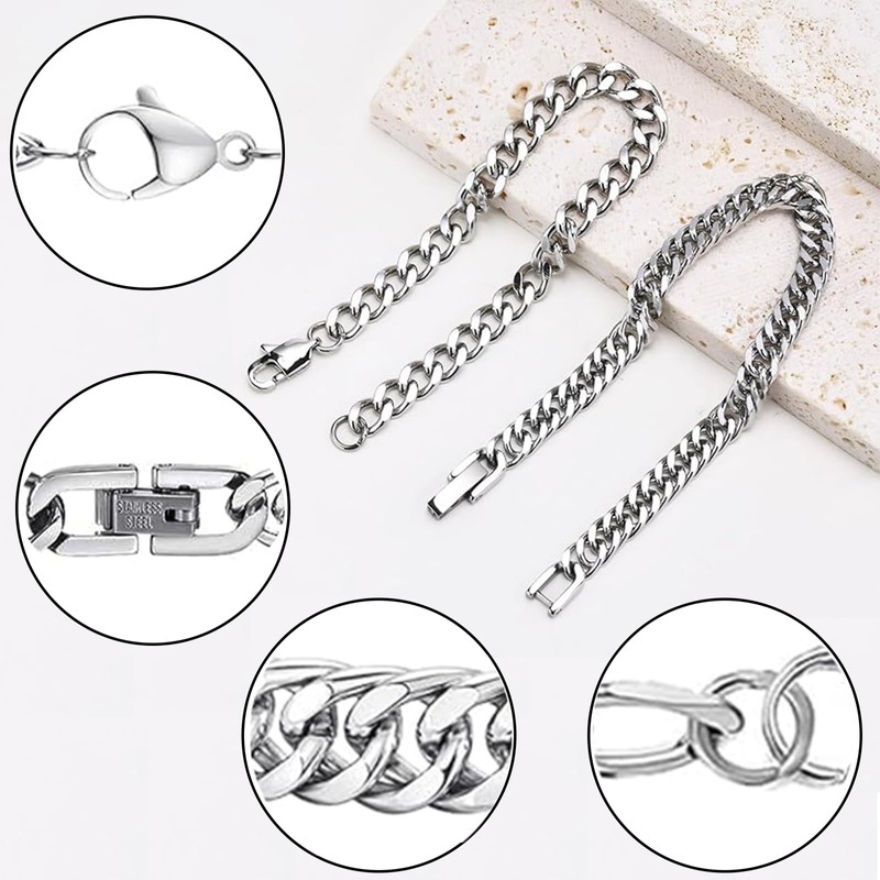 - Various styles: the men's bracelet set consists of 2 men's bracelets with a width of 8 mm, 1 men's bracelet with a width of 7 mm and 1 men's bracelet with a width of 4 mm. The length is 21 cm. The classic and elegant Cuban chain design is suitable for men of all ages. It shows elegance and attracts attention when worn.