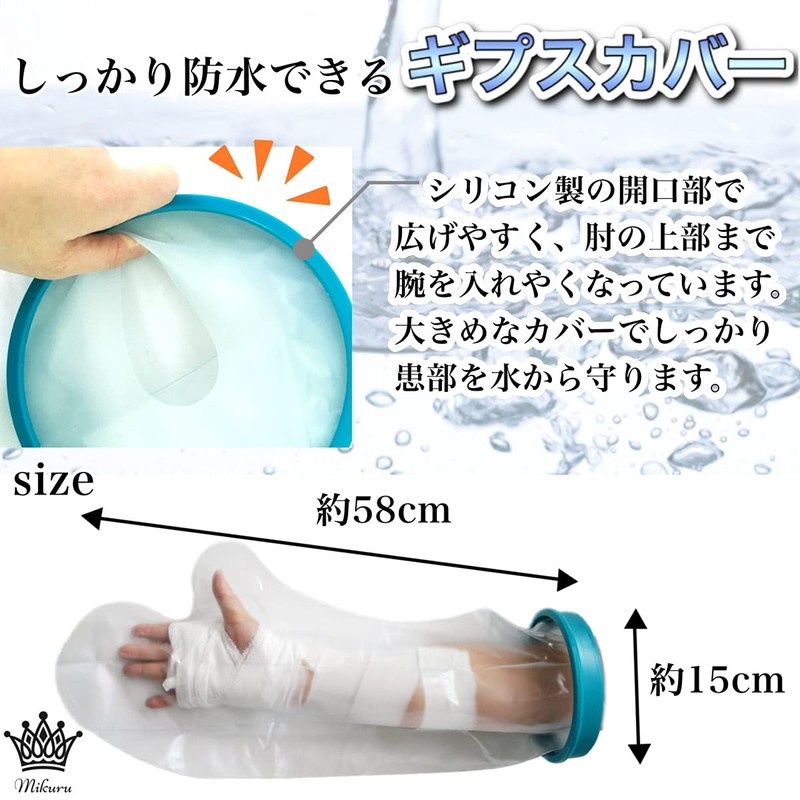 - 【防水性のあるギプスカバー】ギプスカバーの入り口部分はシリコン製となっており、広げやすくギプス部分の肘の上部分まで腕を入れやすい仕様となっています。入浴中にギプスが濡れないように防水ギプスカバーのセットとなっております。