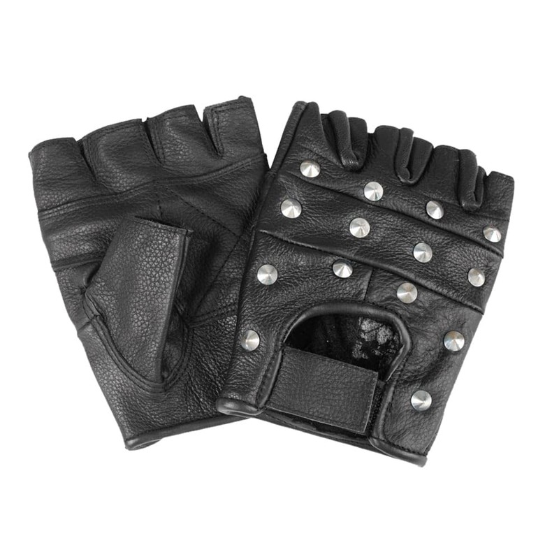 Mil-Tec Biker Fingerless Leather Gloves with Studs, m