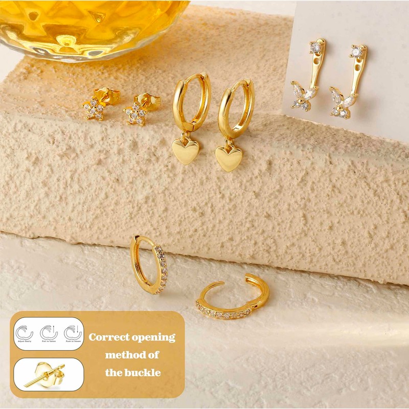 - Earring Sets for Multiple Piercing: One order includes 4 pairs of earrings: flower stud earrings, butterfly stud earrings, cubic zircon huggie hoop earrings and heart pendant hoop earrings; classic and fashionable, it can not only be worn alone but also very suitable for stacking as cartilage earrings to create your unique style