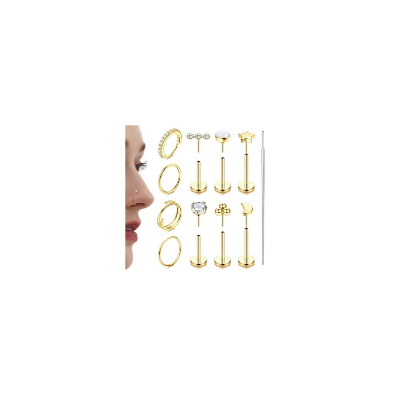 • No More Worry About the Size --Gauge: 18G (1.0mm)/ 20G (0.8mm), Bar Length: 6mm,7mm,8mm, Nose hoop diameter:8mm, Color: Silver / 14K Gold Tone,Multiple sizes are available for you to choose from,different piercing size can be used as stud cartilage earring, helix earrings, daith piercing jewelry, tragus earrings for women, threadless nose studs,lip and medusa piercing jewelry,,conch piercing jewelry