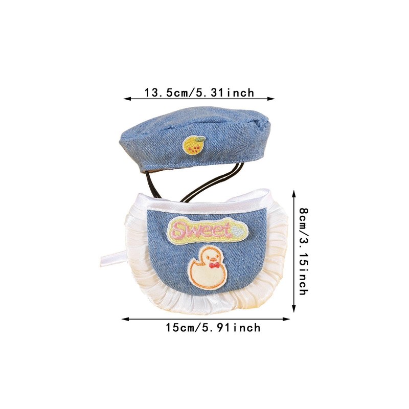 - 【Dimensions】: The beret has a circumference of 33cm with an outer diameter of 13.5cm and an inner diameter of 9cm, while the bib measures 15cmx8cm, ensuring a snug fit for your pet