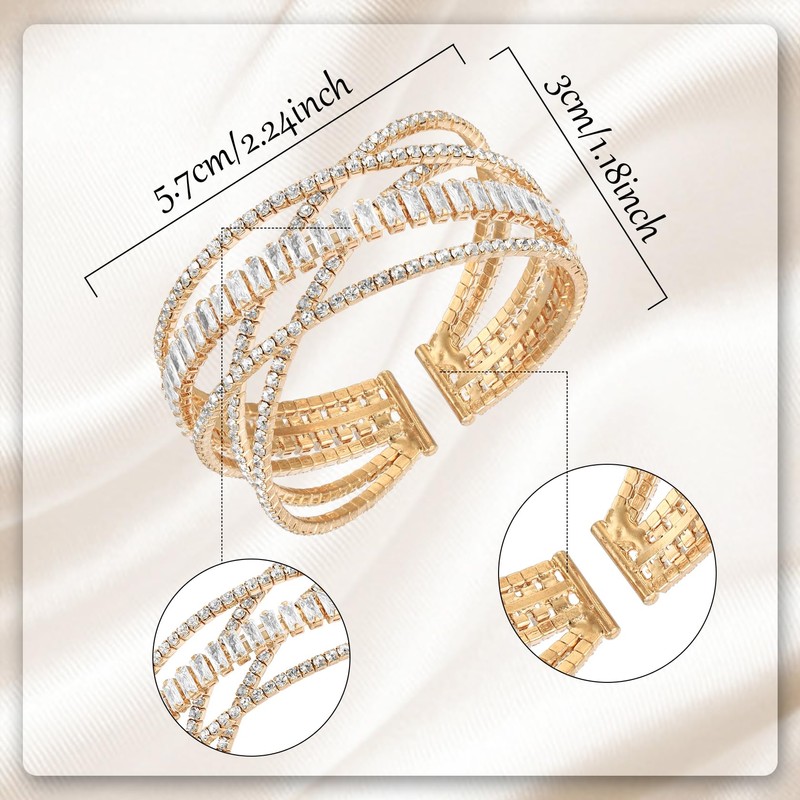 - Perfect Gift: With its elegant design and sparkling crystals, this bracelet makes a thoughtful and stylish gift for any woman in your life. Multilayer Crystal Cuff Bracelet is sure to impress and make a lasting impression.