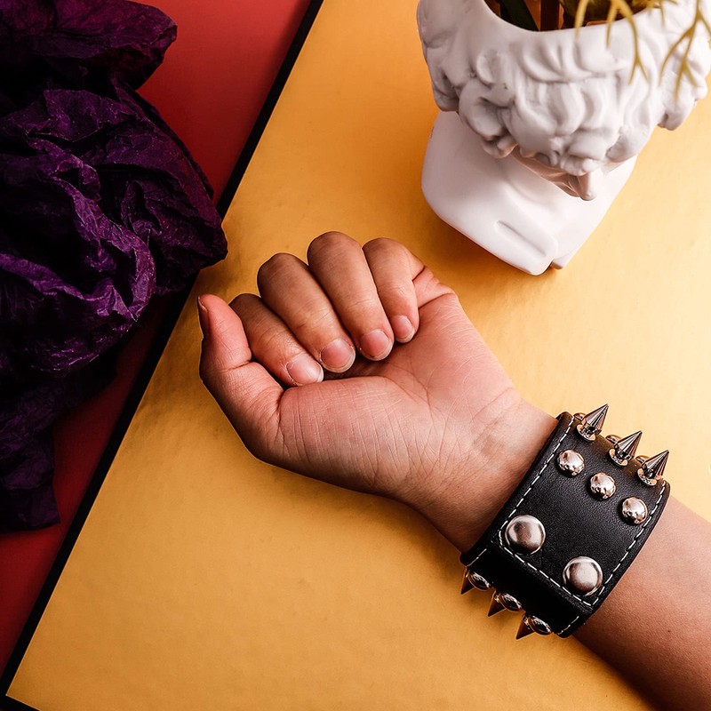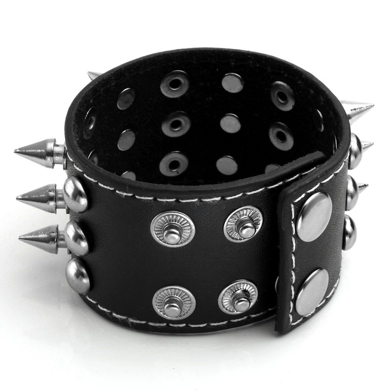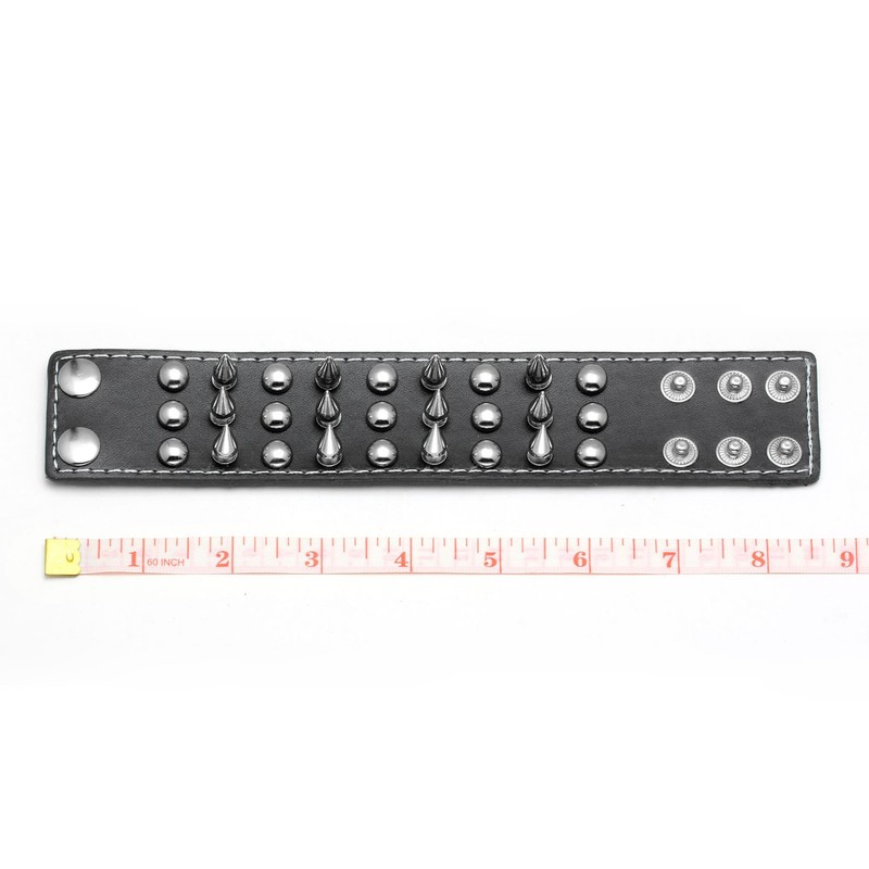 Milakoo Unisex Black Metal Spike Riveter Punk Rock Biker Wide Strap Leather Bracelet Necklace Bracelet Adjustable, Base Metal