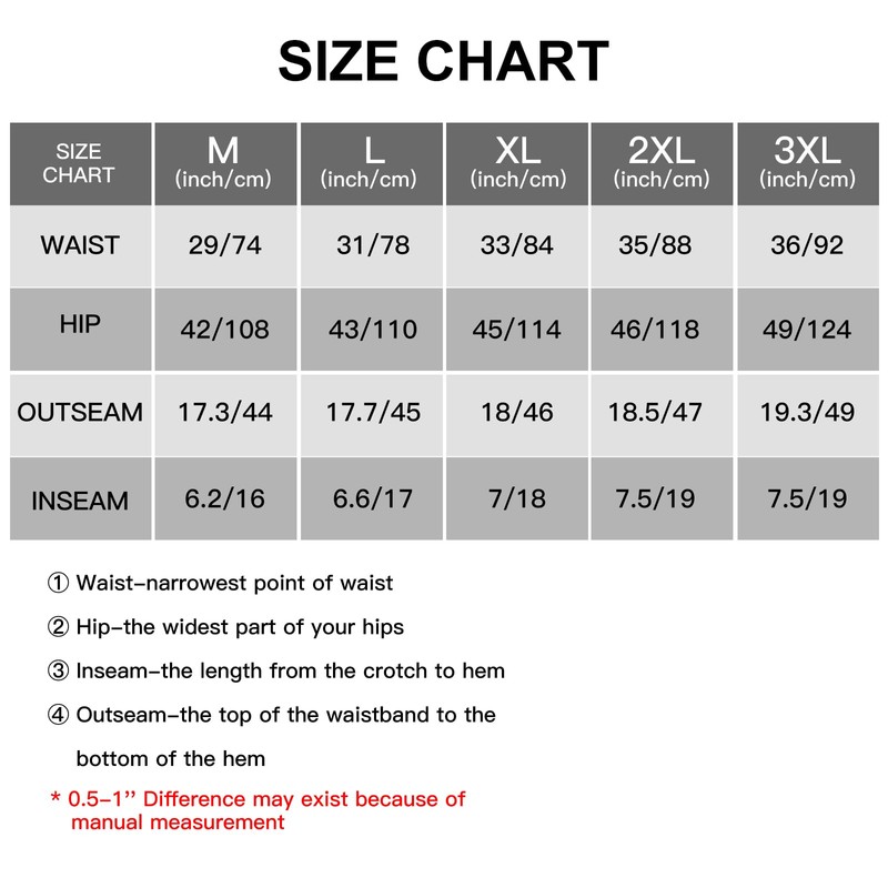 3XL (Inches/cm): Waist: 36/92 Hip: 49/124 Outside: 19.3/49 Inside: 7.5/19