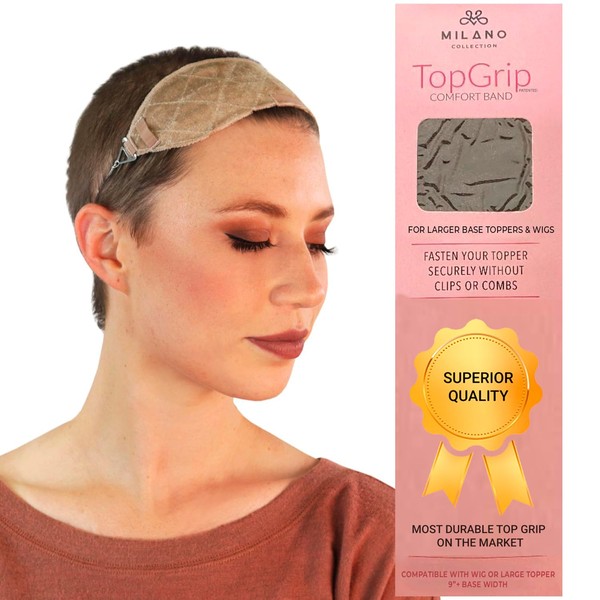 - Talla única: el agarre superior patentado de Milano cuenta con una banda WiGrip ajustable de talla única para proporcionar seguridad antideslizante durante todo el día para tu peluca, y se adapta a una variedad de tamaños de cobertura que van desde 5 x 6 pulgadas o más pequeños en circunferencia; el TopGrip mide 7 x 2.75 pulgadas. Peso: 0.83 onzas.
