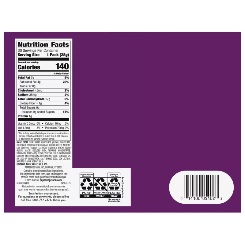 - 2 cookies per pack