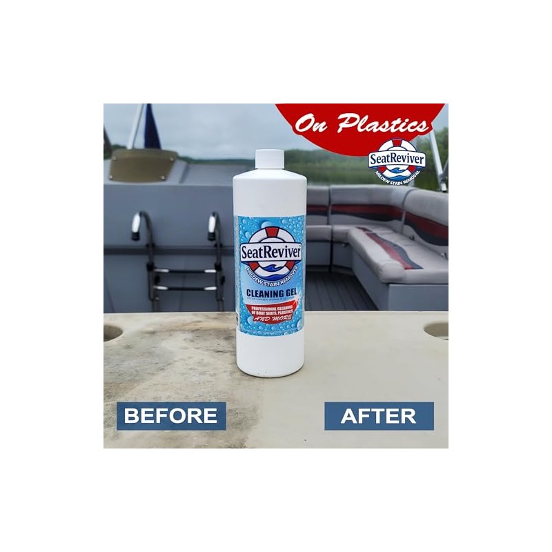 Mildew Stain Remover for Boat Seats, Vinyl & Plastic | Fast-Acting Gel Formula That Sticks Longer | No Scrub Needed | 32oz