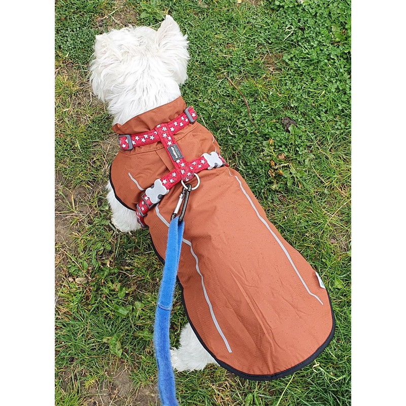 Mile High Life | Dog Raincoat | Adjustable Water Proof Pet Clothes | Lightweight Rain Jacket with Reflective Strip | Easy Step in Closure (S,Brown)
